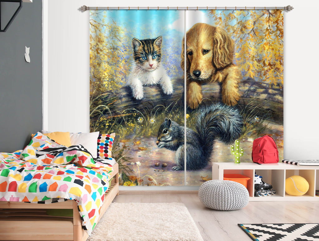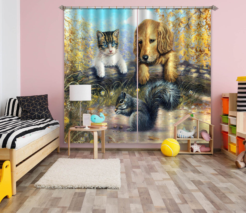 3D Squirrel Dog 132 Kevin Walsh Curtain Curtains Drapes