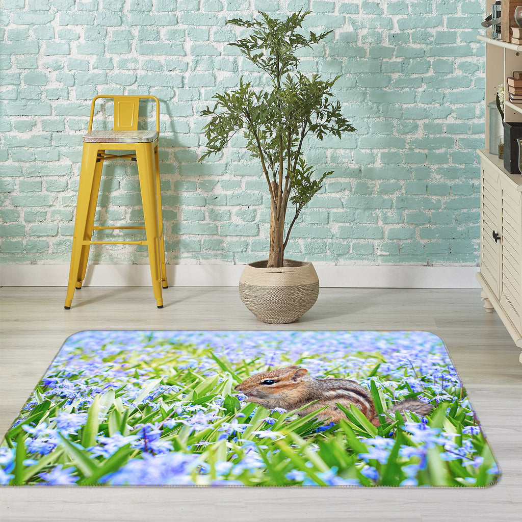 3D Squirrel Flower 031 Animal Non Slip Rug Mat