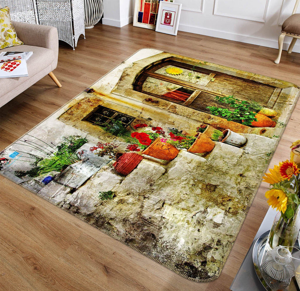 3D Staircase Flower Pot 674 Non Slip Rug Mat