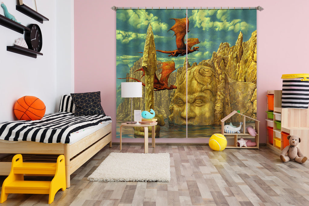 3D Statue Dragon 7217 Ciruelo Curtain Curtains Drapes