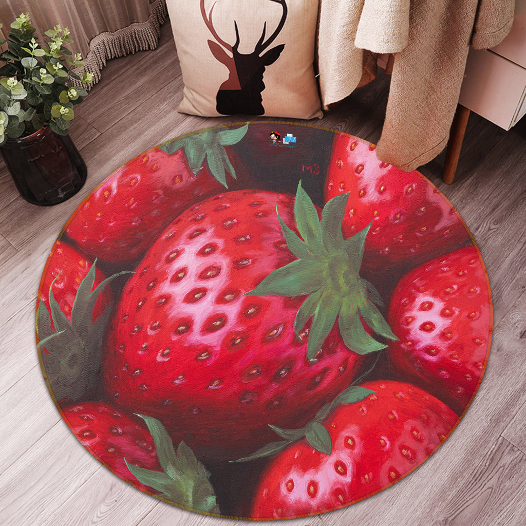 3D Strawberry 18161 Marina Zotova Rug Round Non Slip Rug Mat Sinsin