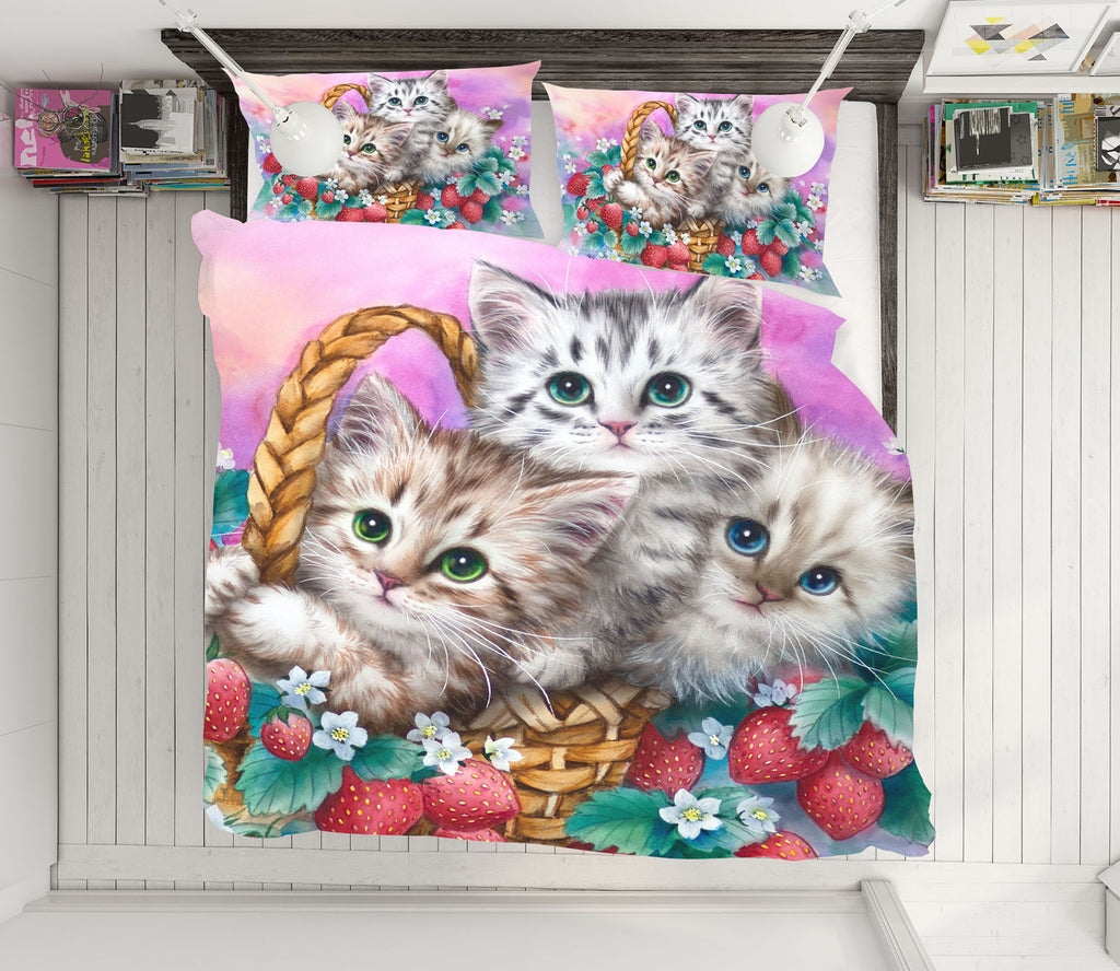 3D Strawberry Cat 5858 Kayomi Harai Bedding Bed Pillowcases Quilt Cover Duvet Cover Amy