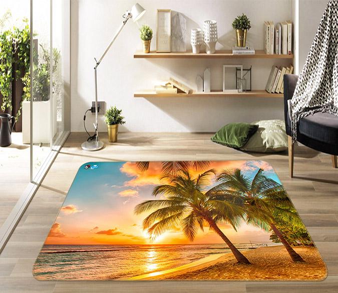 3D Sunset Sea Tree 438 Non Slip Rug Mat