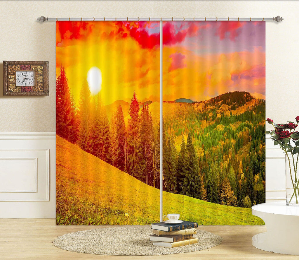3D Sunset Steppe 837 Curtains Drapes Dai