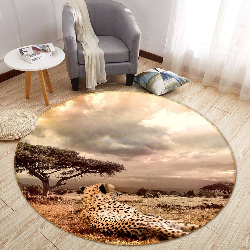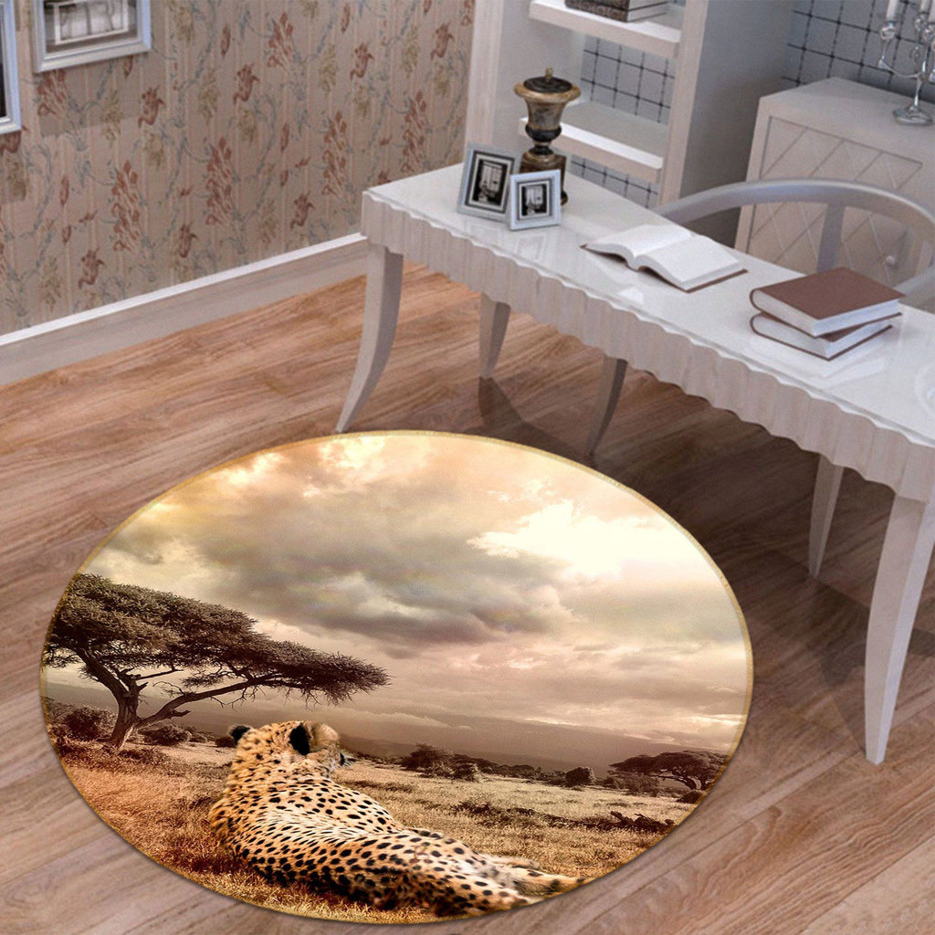 3D Sunset Tiger 026 Animal Round Non Slip Rug Mat