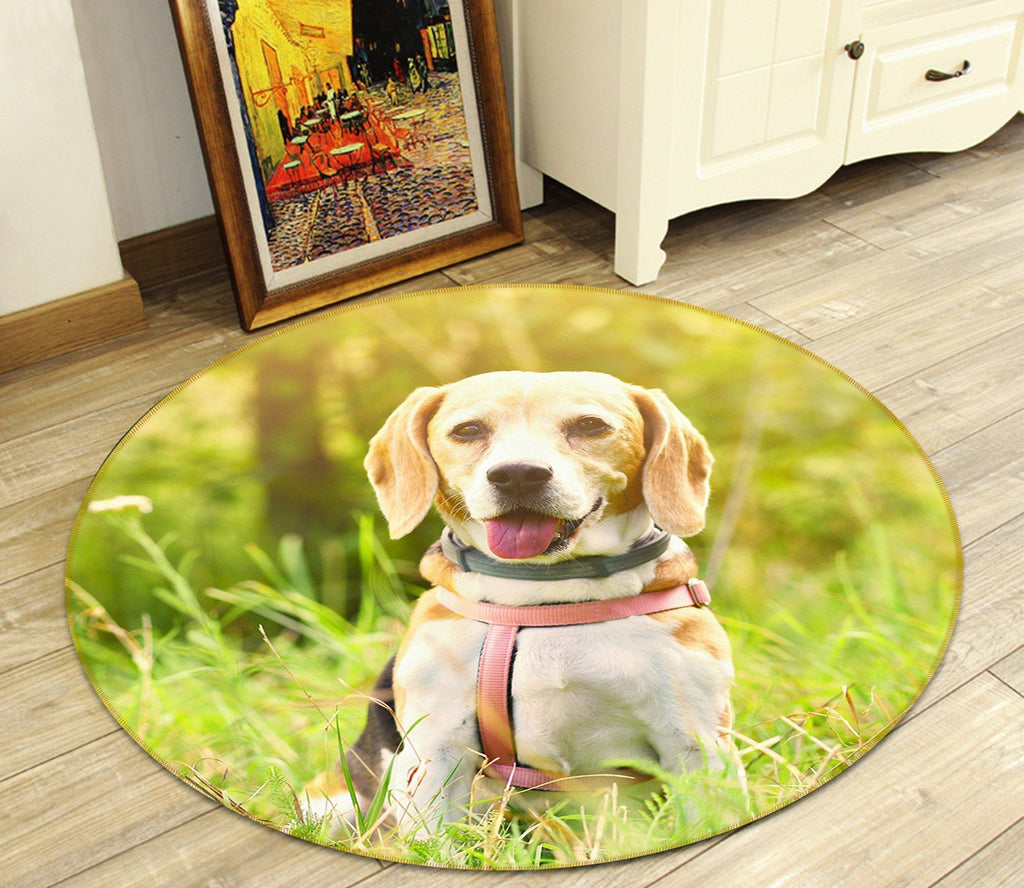 3D Sunshine Dog 051 Animal Round Non Slip Rug Mat