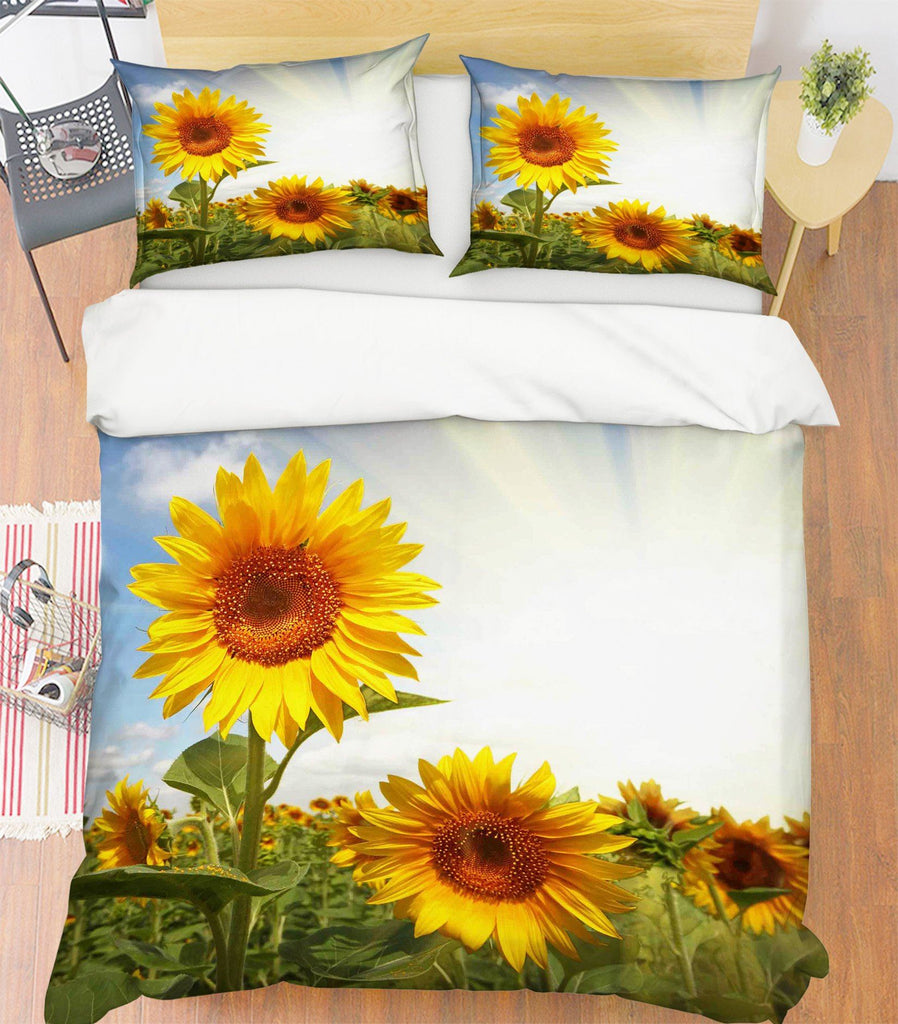 3D Sunshine Sunflower 130 Bed Pillowcases Quilt