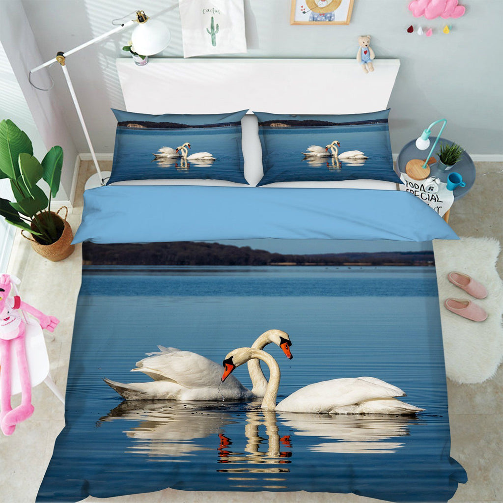 3D Swan Playing 2001 Bed Pillowcases Quilt