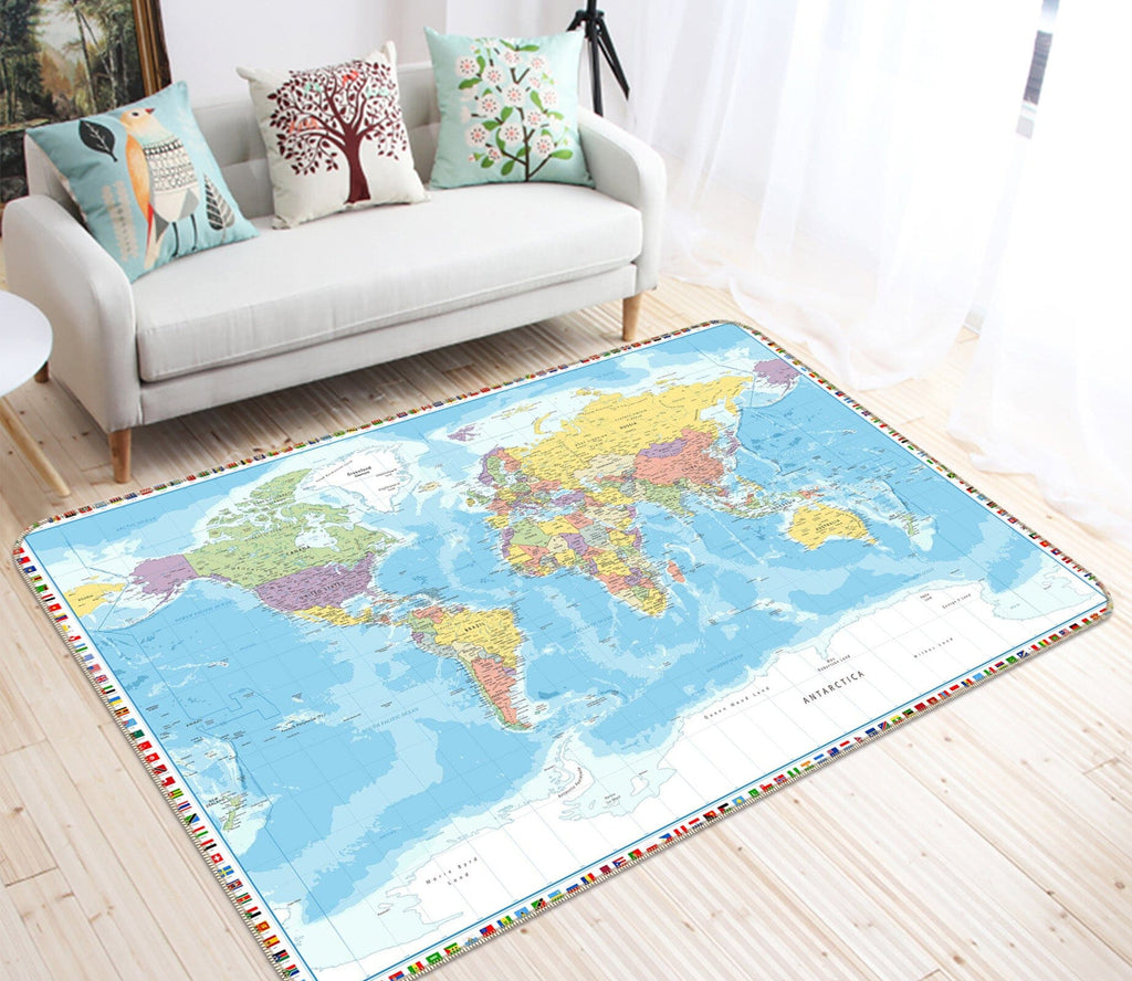3D Terrestrial Ocean 315 World Map Non Slip Rug Mat Dai