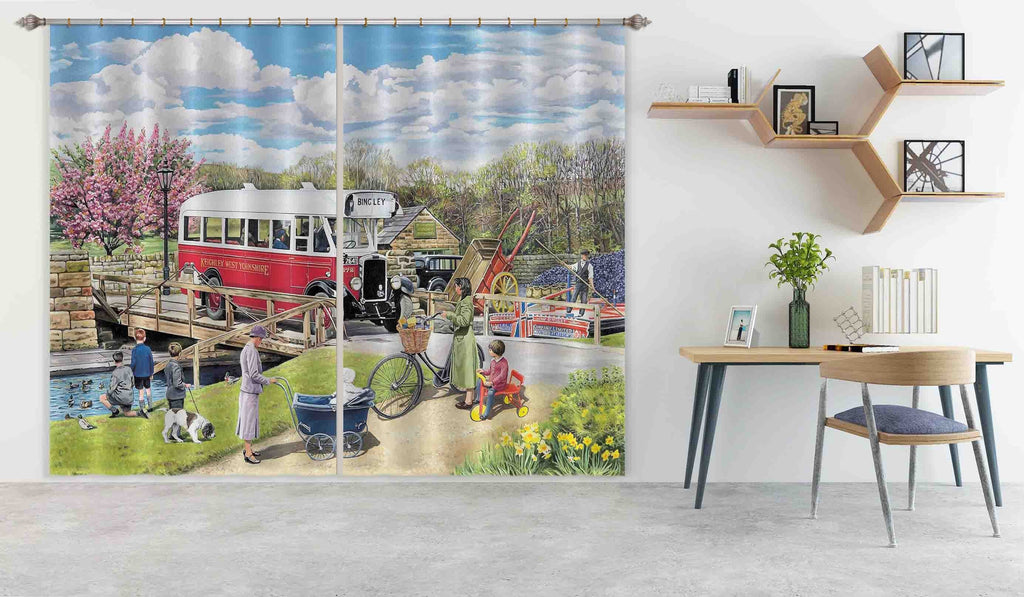 3D The Old Swing Bridge 103 Trevor Mitchell Curtain Curtains Drapes