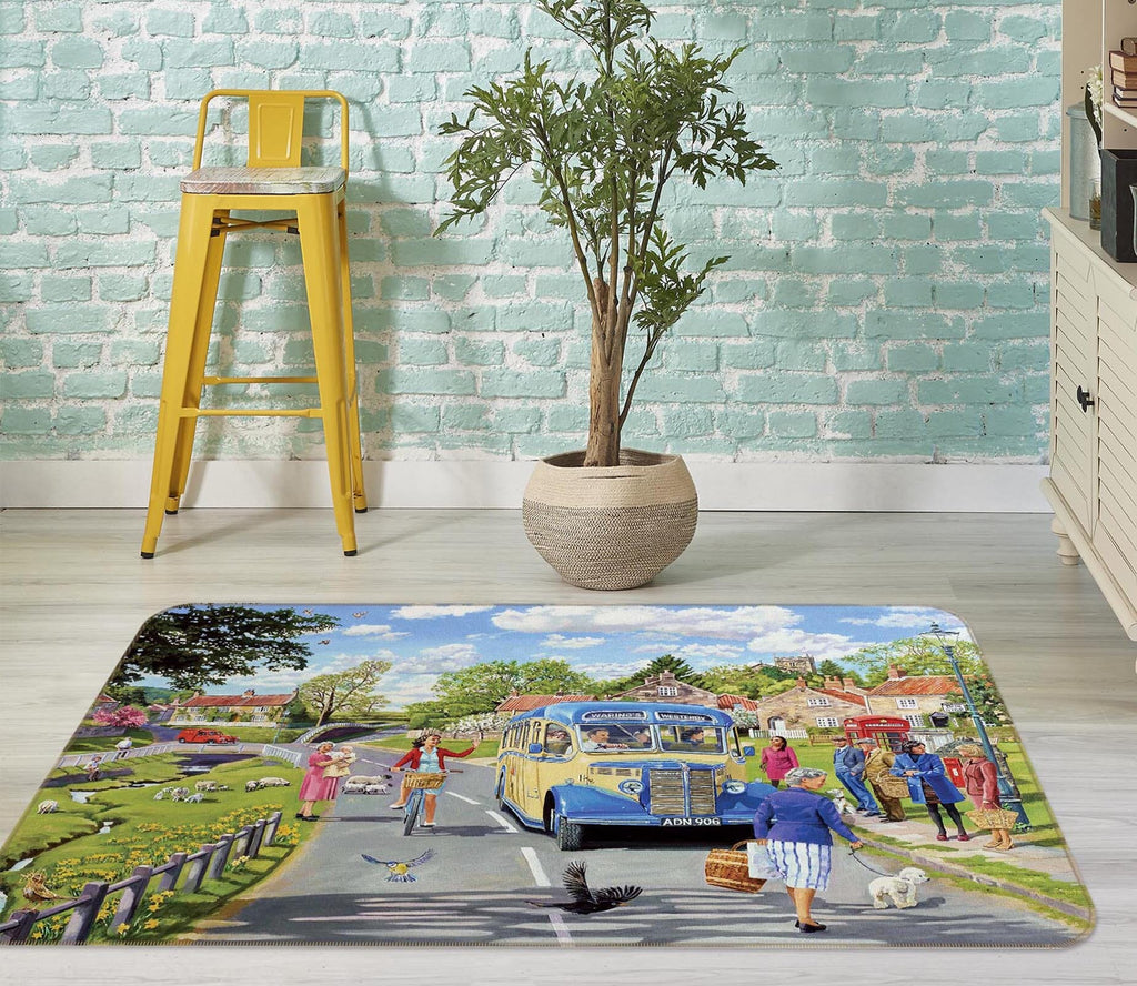 3D The Village Bus Stop 1122 Trevor Mitchell Rug Non Slip Rug Mat Dai