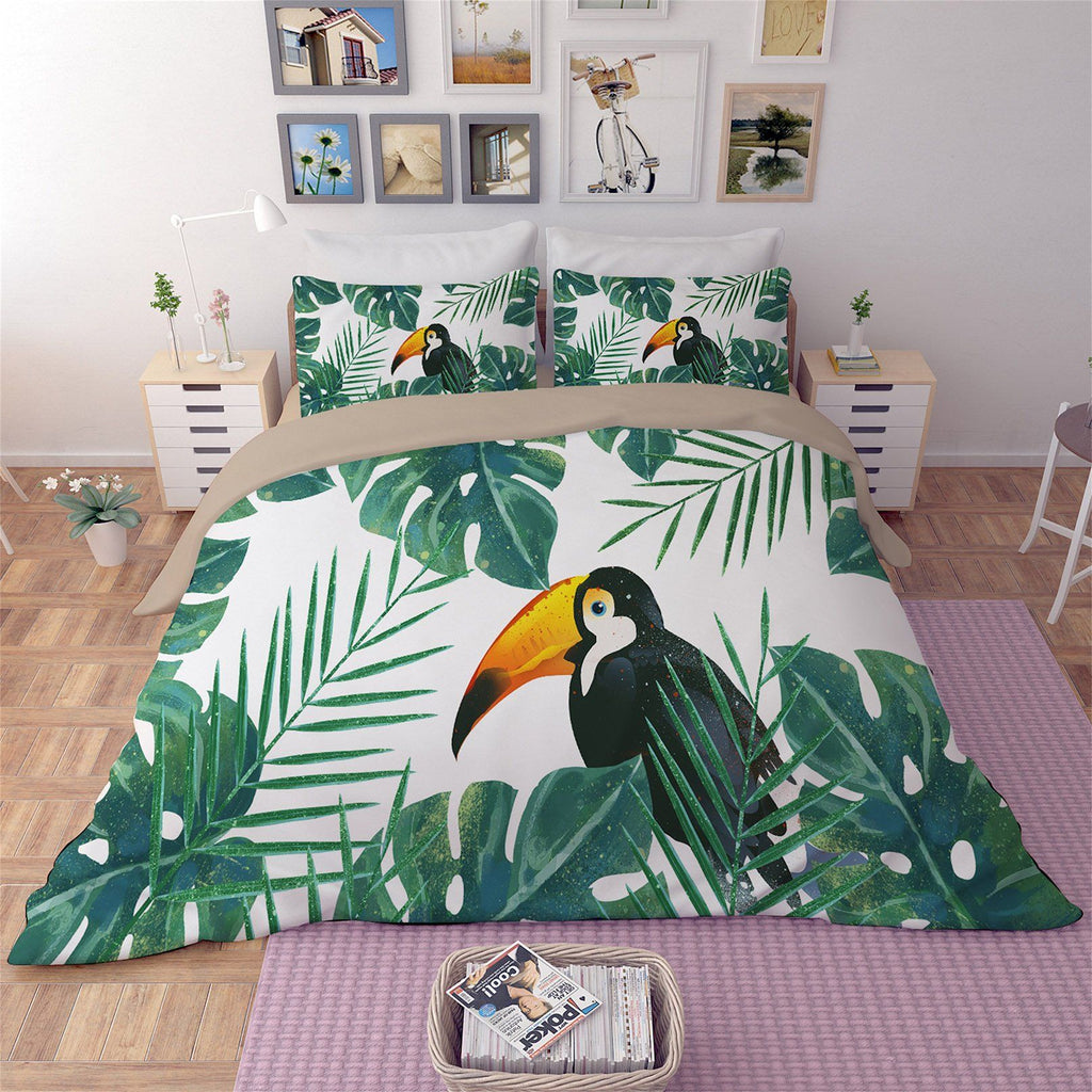 3D Toucan Leaves 102 Bed Pillowcases Quilt