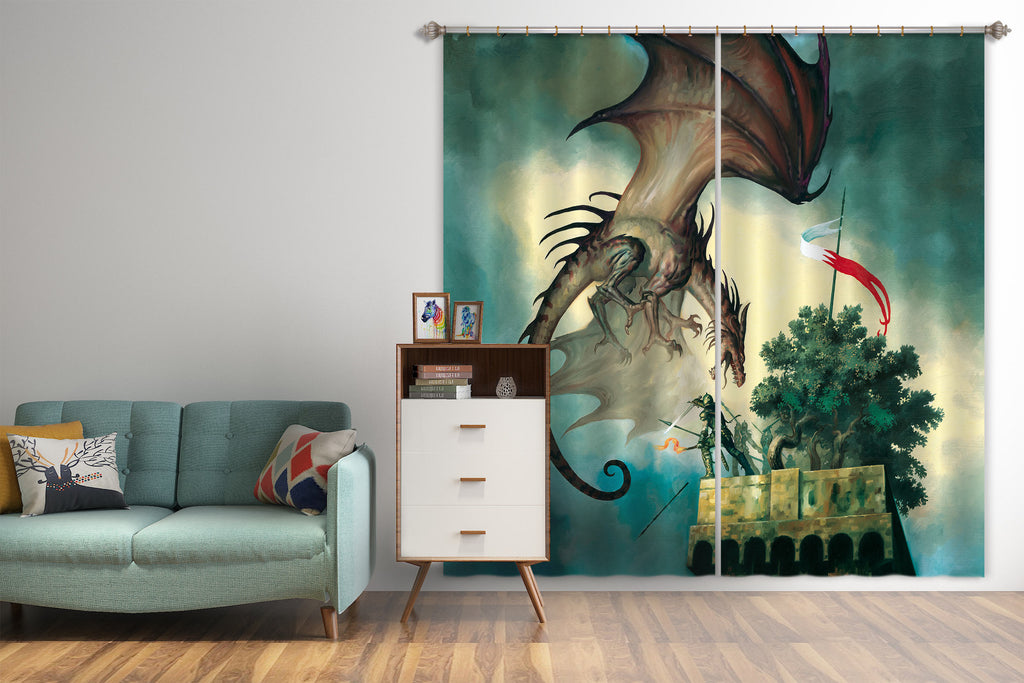 3D Tower Top Tree Dragon 7199 Ciruelo Curtain Curtains Drapes