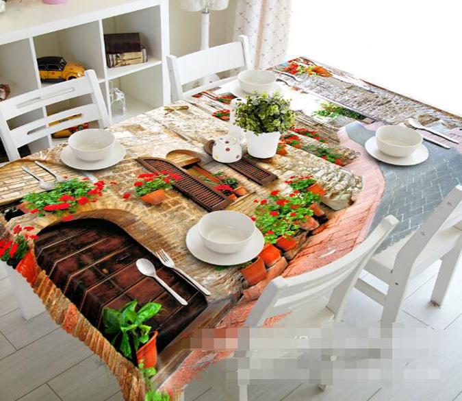 3D Town Alley Potted Flowers 963 Tablecloths
