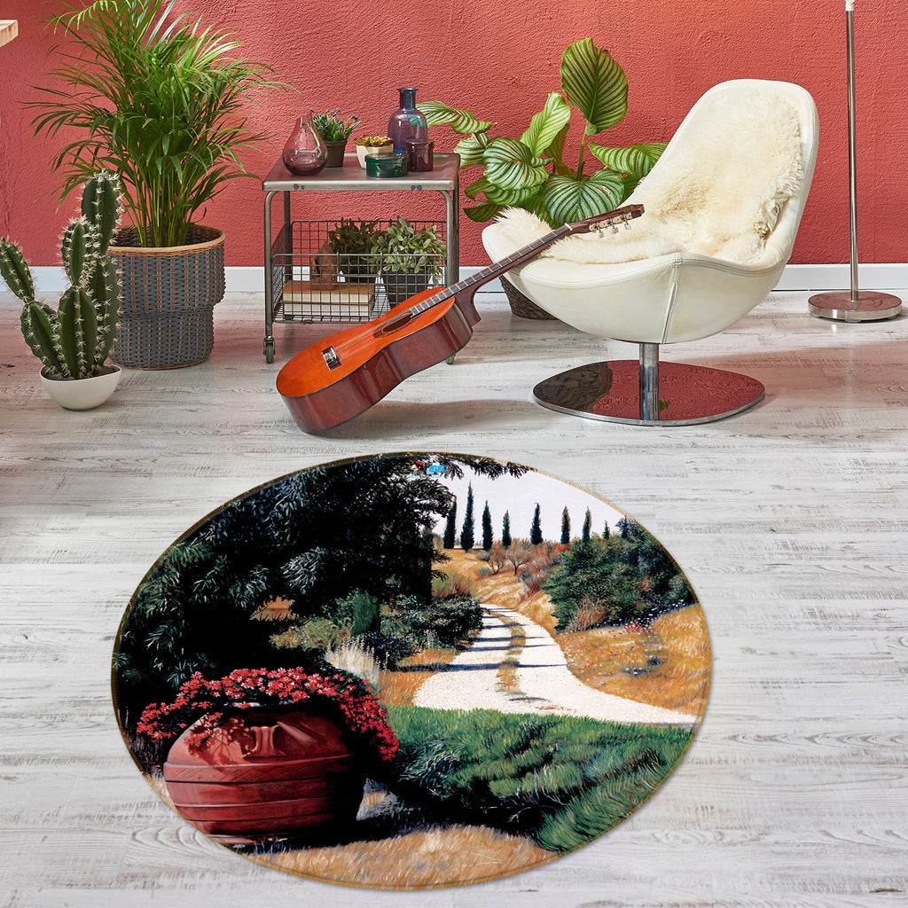 3D Trees Path 110100 Matthew Holden Bates Rug Round Non Slip Rug Mat Sinsin