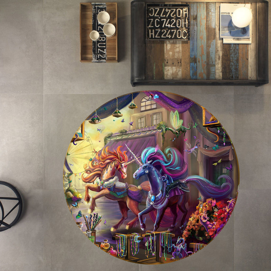 3D Two Colorful Unicorns 83177 Rose Catherine Khan Rug Round Non Slip Rug Mat Sinsin
