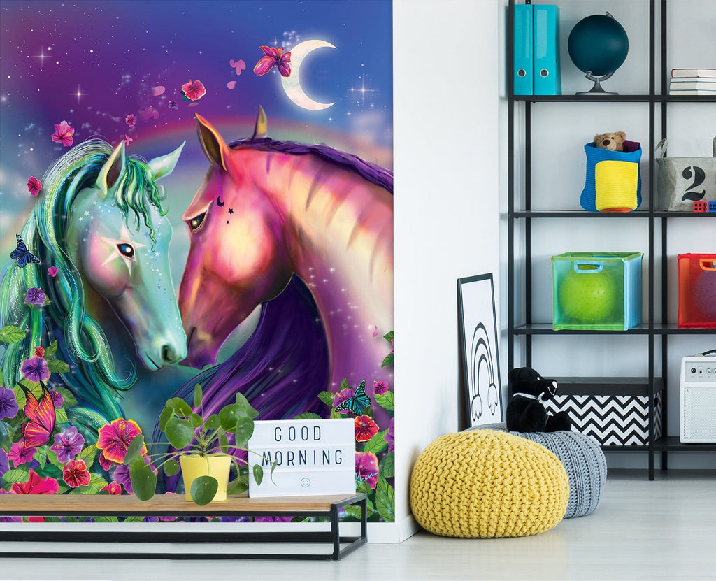 3D Two Horses 1424 Rose Catherine Khan Wall Mural Wall Murals Dai