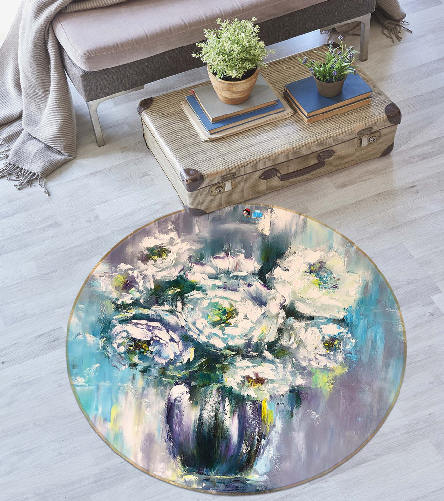 3D Vase Oil Painting 793 Skromova Marina Rug Round Non Slip Rug Mat Amy