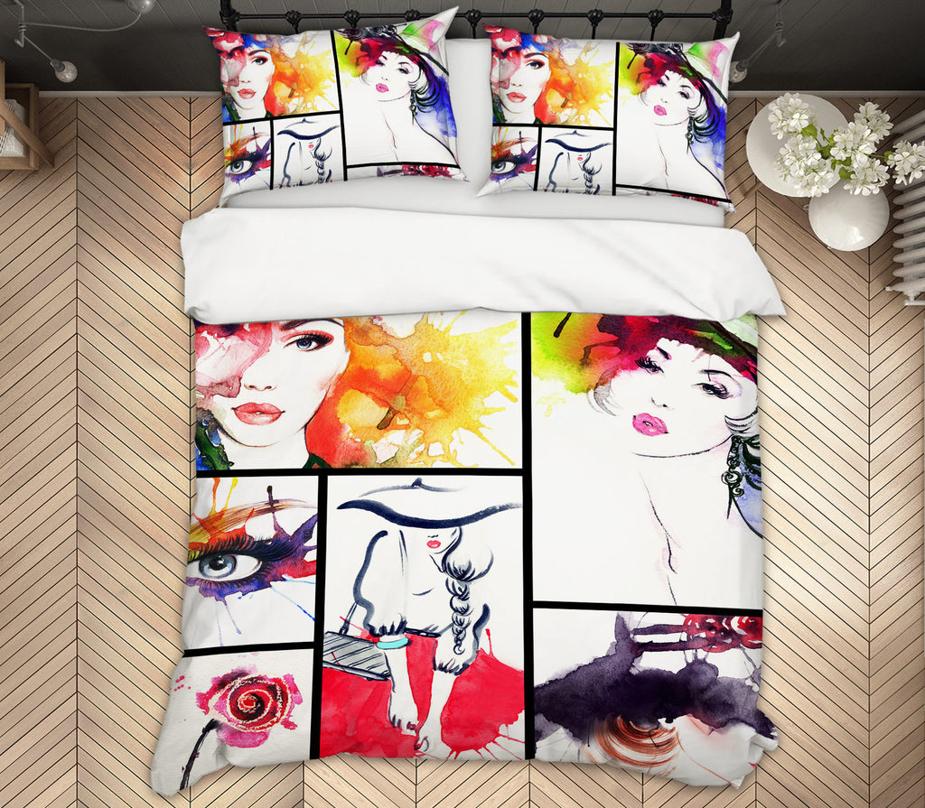 3D Watercolor Model 015 Bed Pillowcases Quilt Zoe