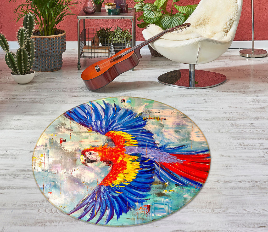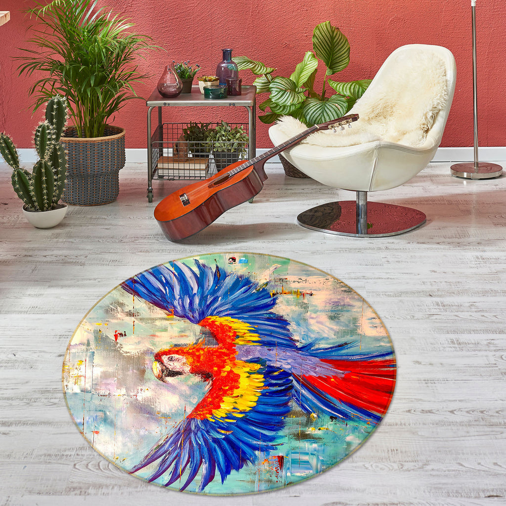 3D Watercolor Parrot 837 Skromova Marina Rug Round Non Slip Rug Mat Amy