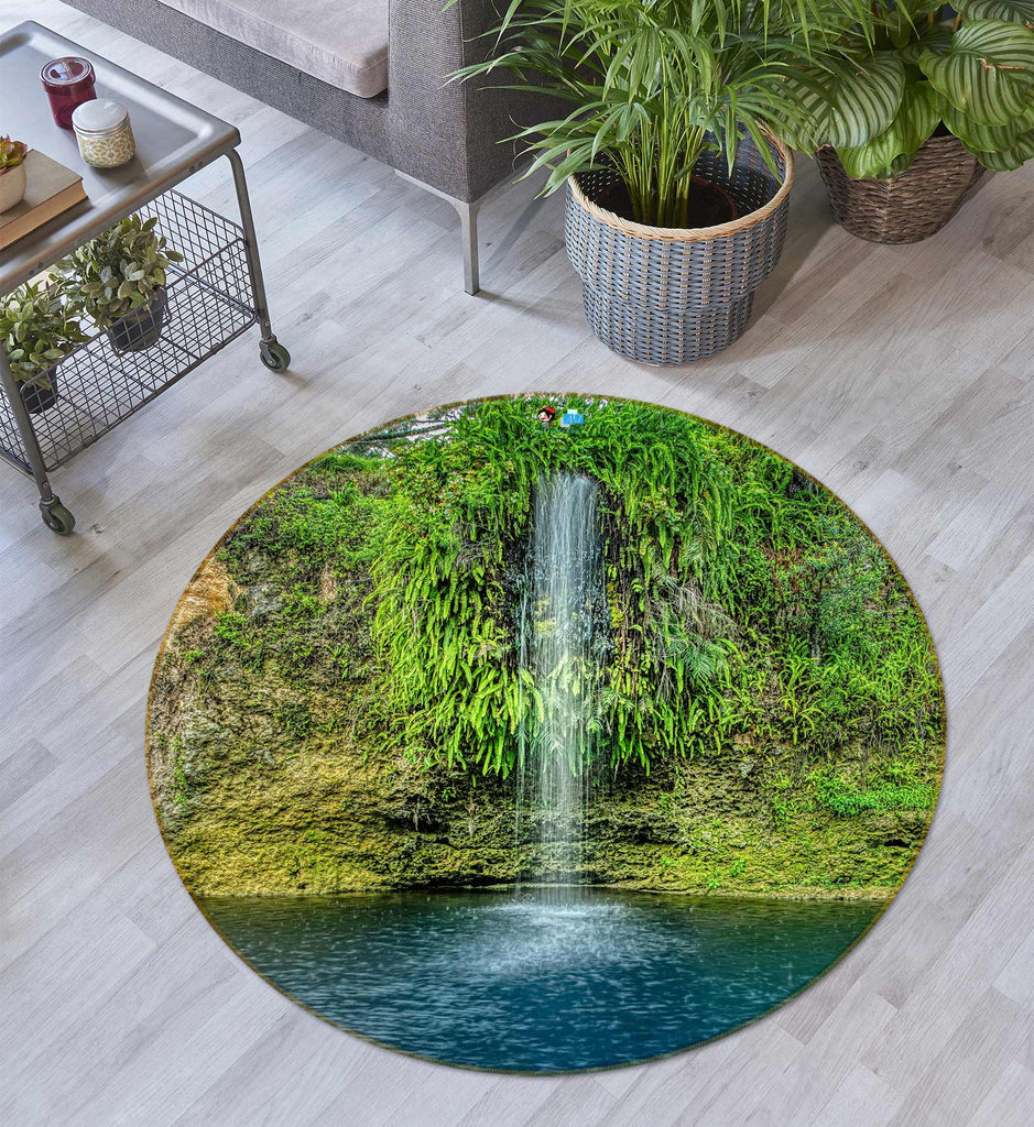 3D Waterfall Grass 5039 Beth Sheridan Rug Round Non Slip Rug Mat Amy