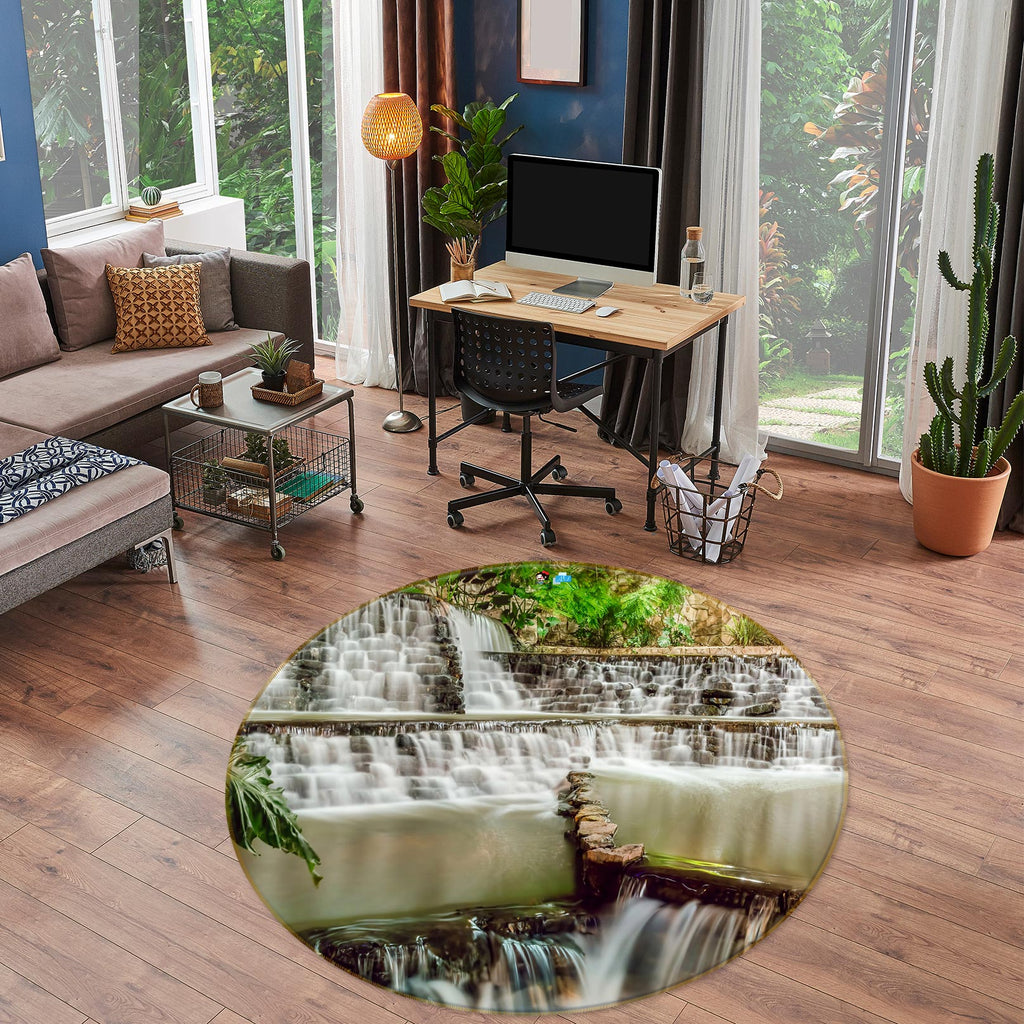 3D Waterfall River 5044 Beth Sheridan Rug Round Non Slip Rug Mat Amy