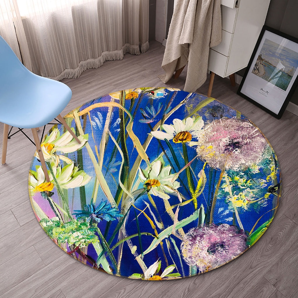 3D White Daisy Petals 860 Skromova Marina Rug Round Non Slip Rug Mat Amy