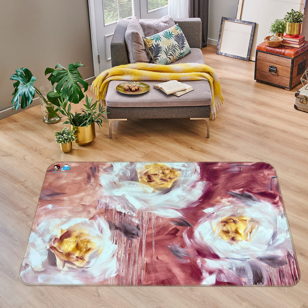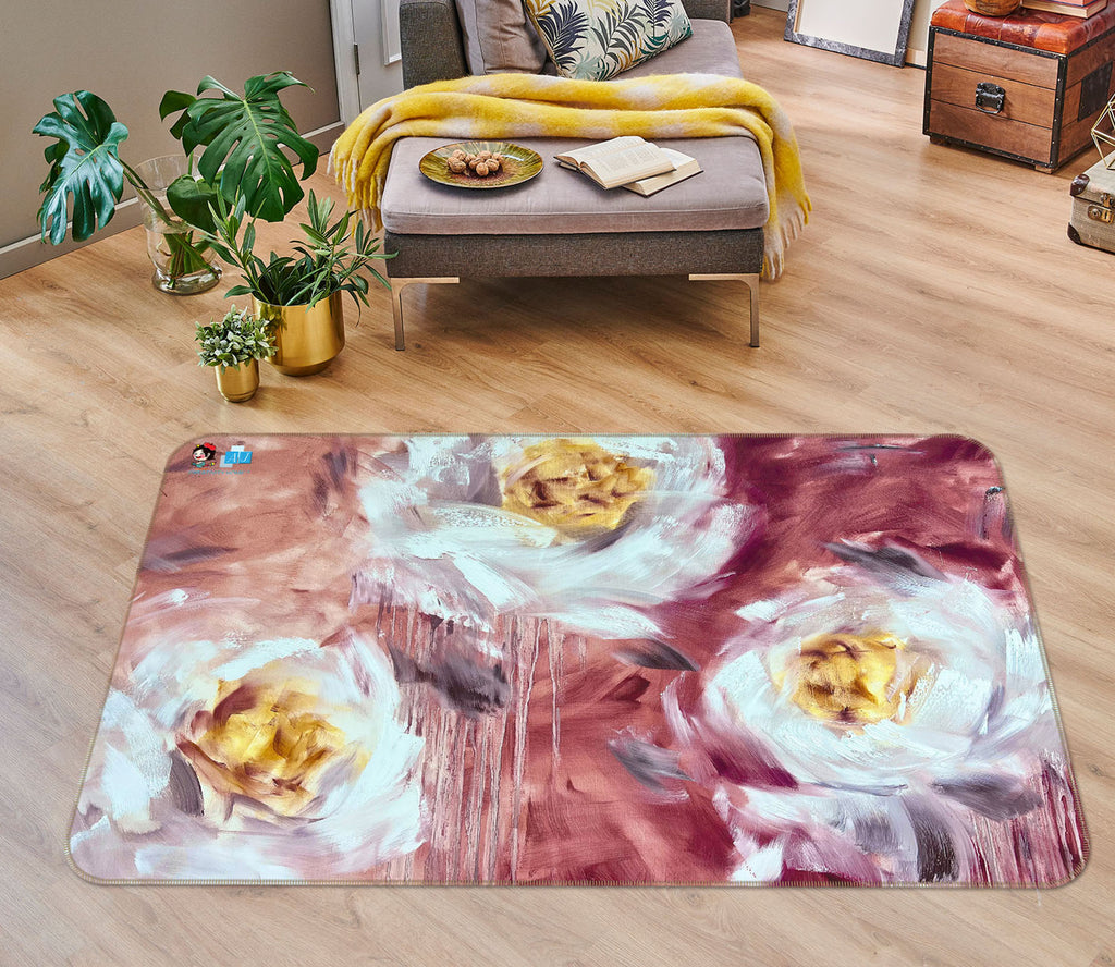 3D White Flower 3035 Skromova Marina Rug Non Slip Rug Mat Amy