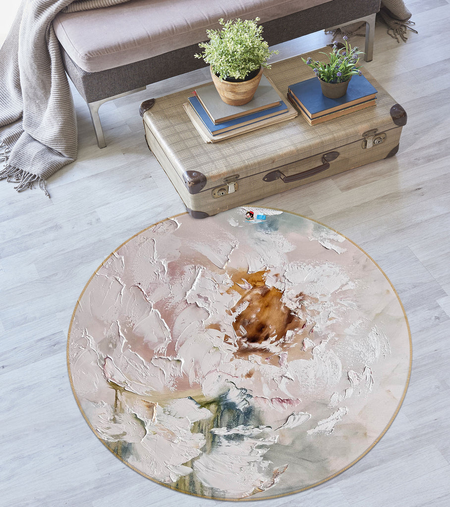 3D White Flower 4054 Skromova Marina Rug Round Non Slip Rug Mat