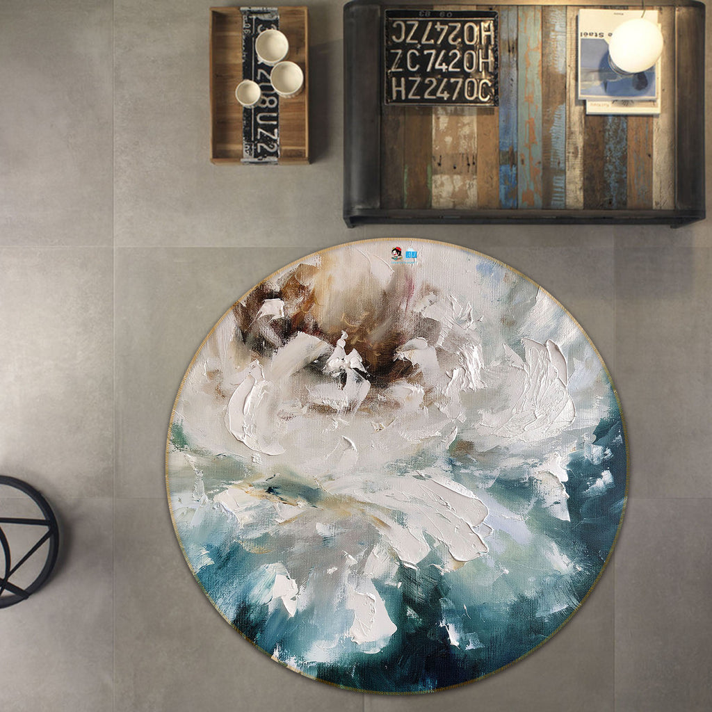 3D White Flower 904 Skromova Marina Rug Round Non Slip Rug Mat Amy
