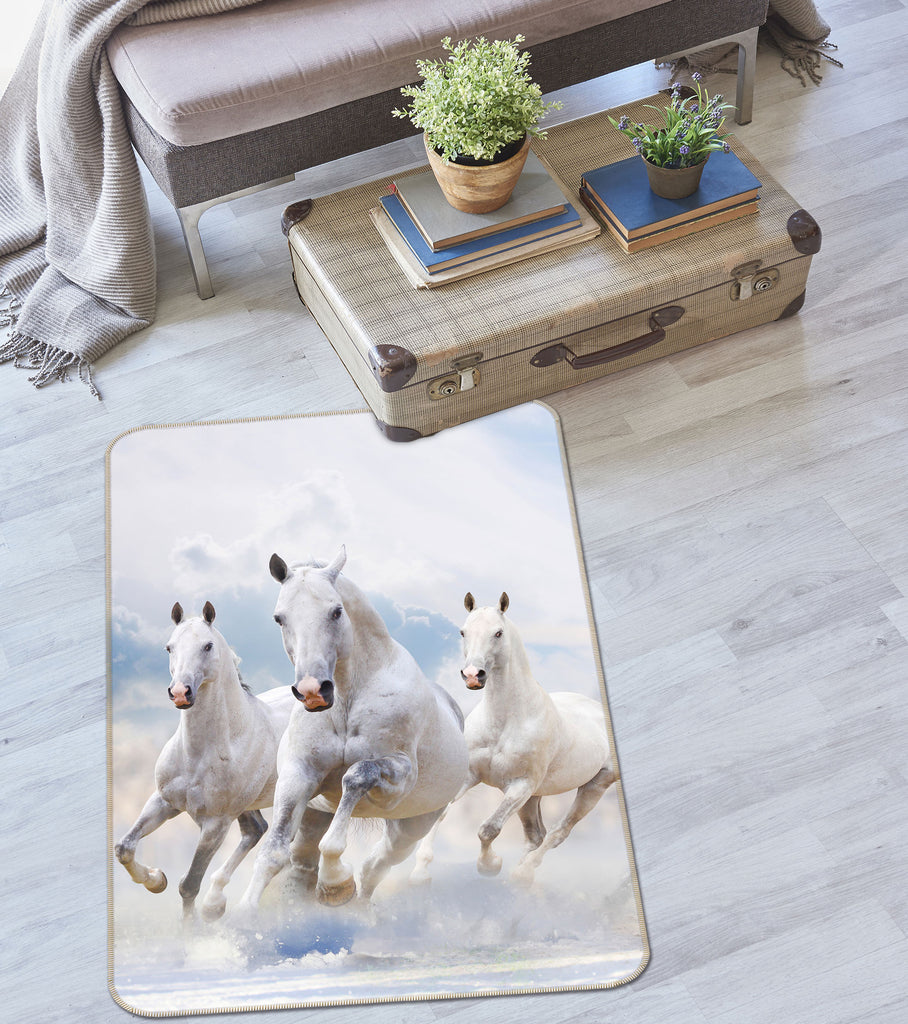 3D White Horse Running 175 Animal Non Slip Rug Mat