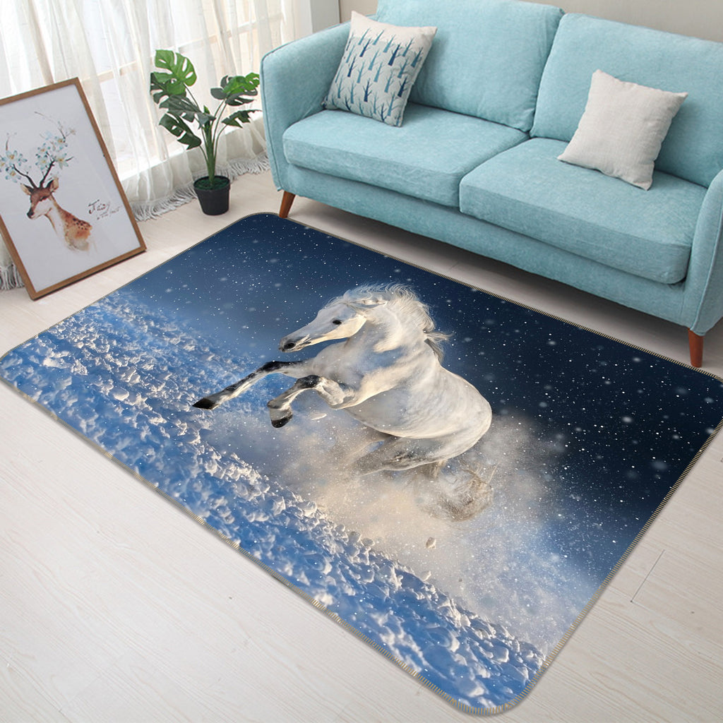 3D White Horse Snow 046 Animal Non Slip Rug Mat