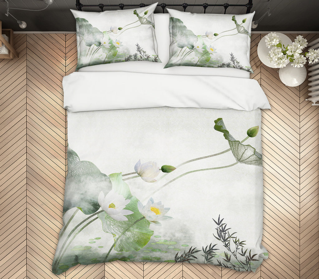 3D White Lotus 12090 Bed Pillowcases Quilt Sinsin
