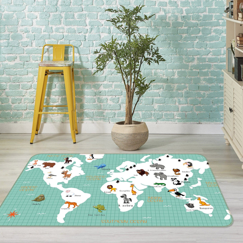 3D White Painted 204 World Map Non Slip Rug Mat Dai