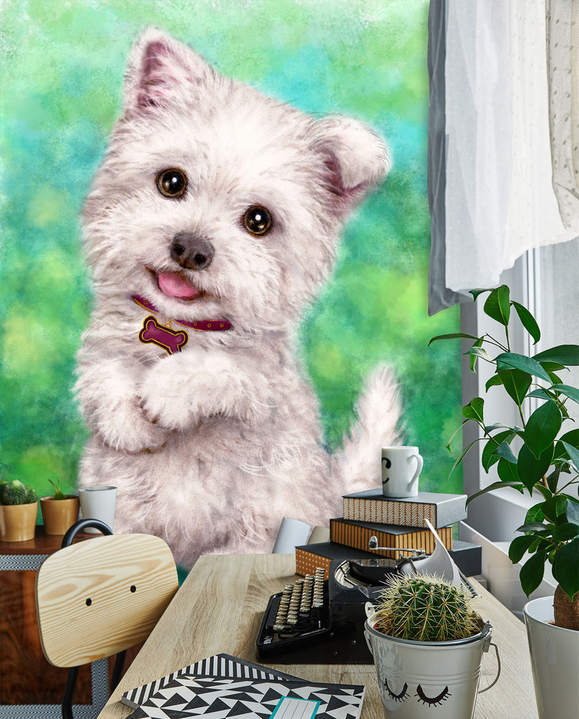 3D White Puppy 5500 Kayomi Harai Wall Mural Wall Murals Amy