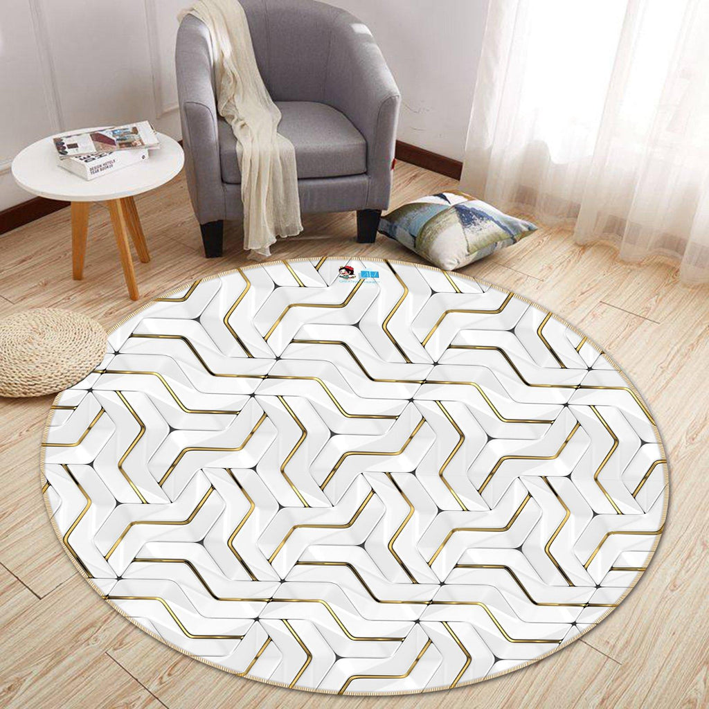3D White Triangle Stitching 134 Round Non Slip Rug Mat