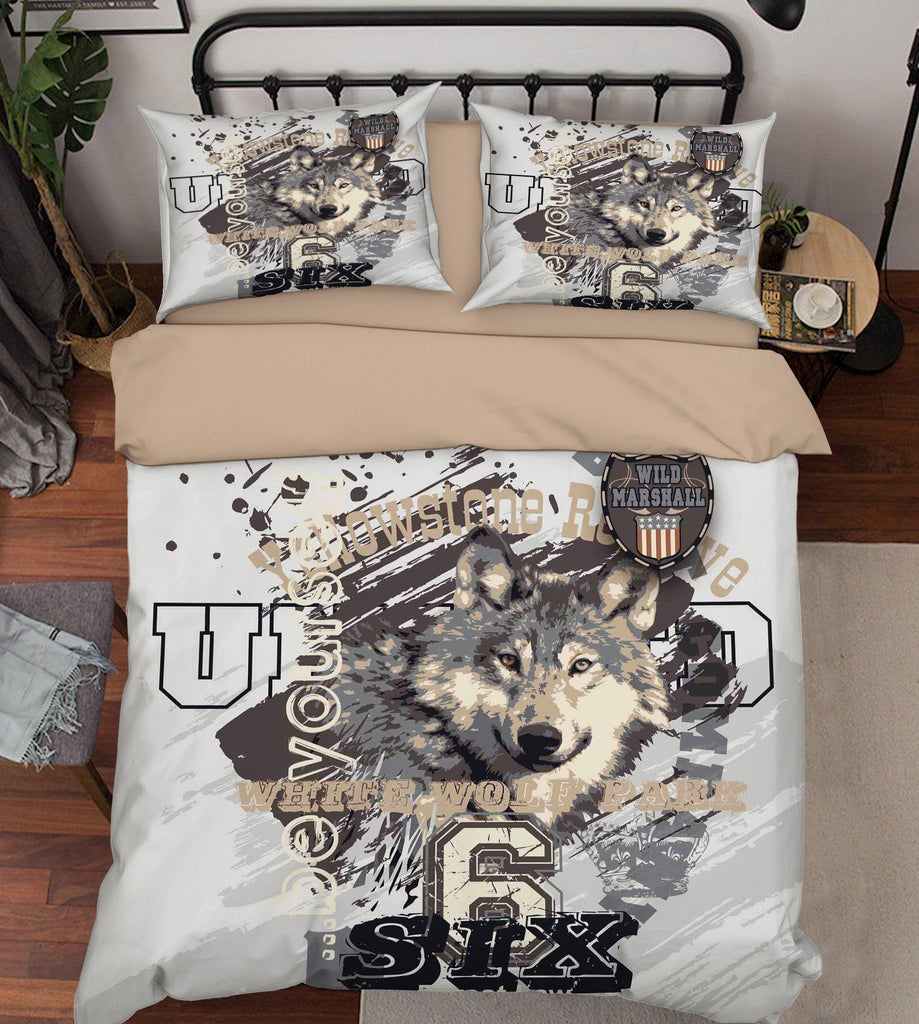 3D Wolf Head 049 Bed Pillowcases Quilt