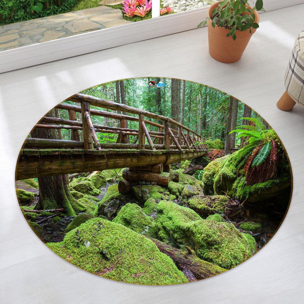 3D Wooden Bridge Jungle 80276 Round Non Slip Rug Mat Sinsin