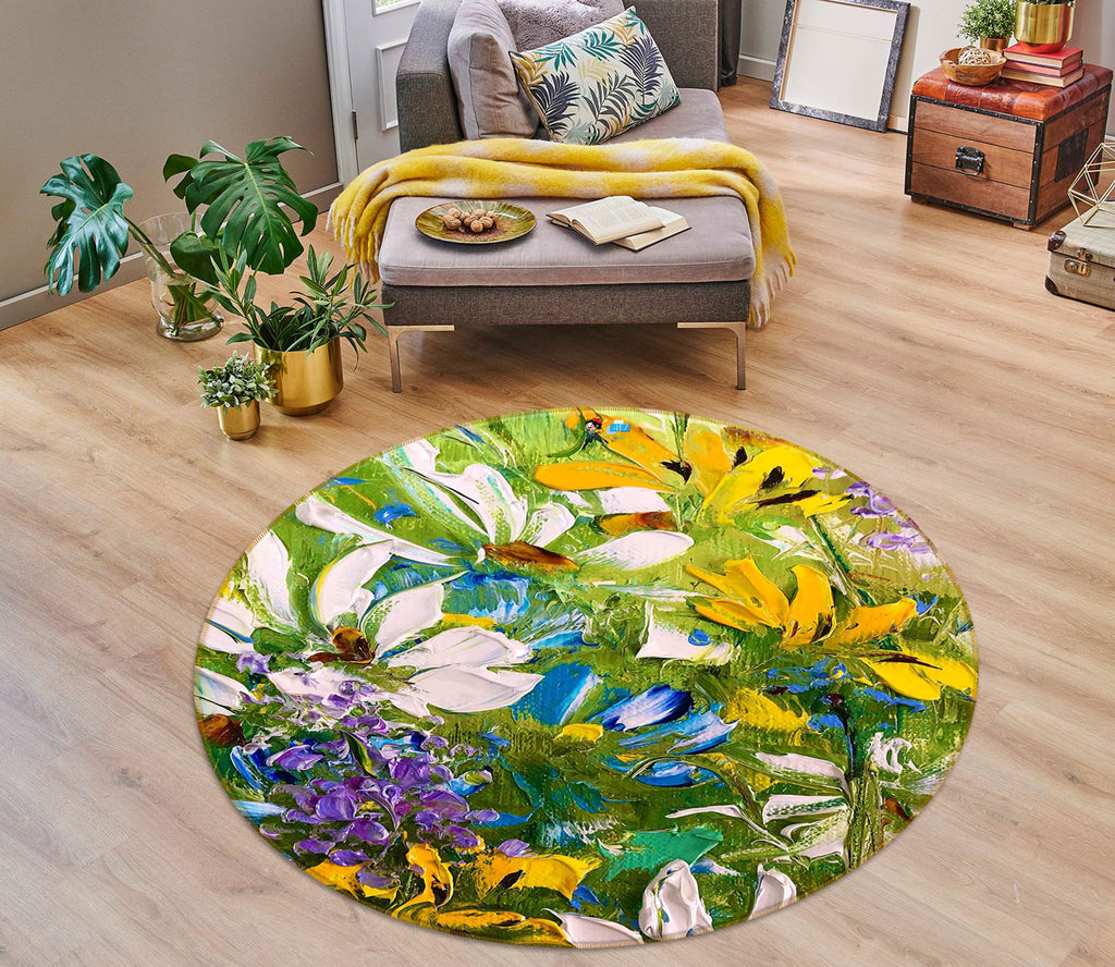 3D Yellow Flower 746 Skromova Marina Rug Round Non Slip Rug Mat Amy