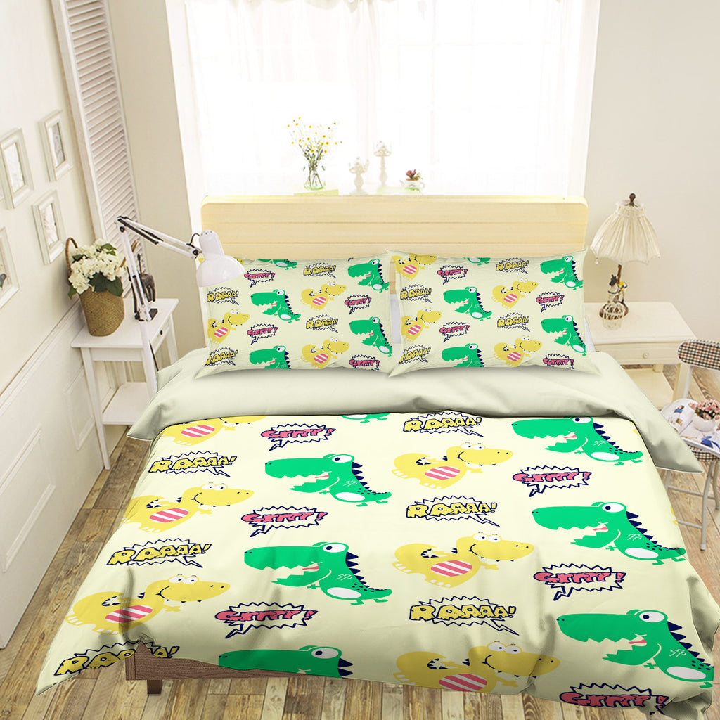 3D Yellow Green Dinosaur 61099 Bed Pillowcases Quilt