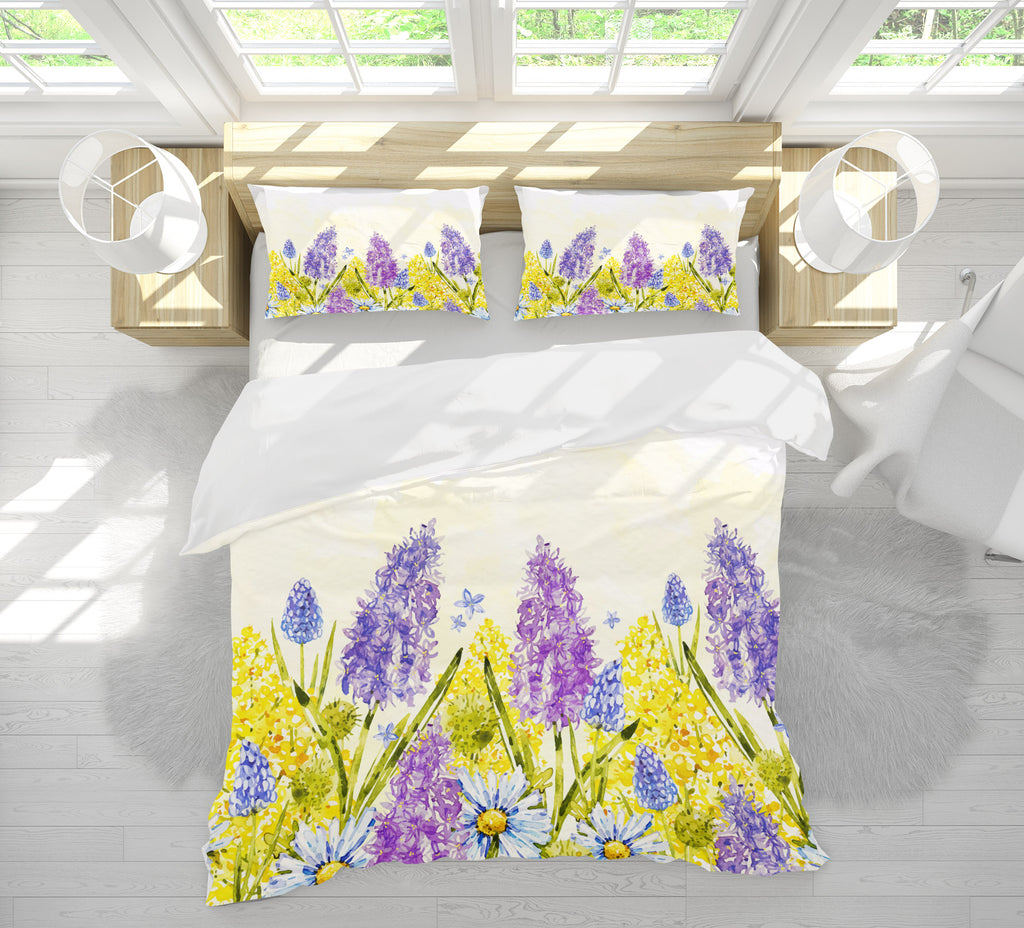 3D Yellow Purple Flowers 60187 Bed Pillowcases Quilt
