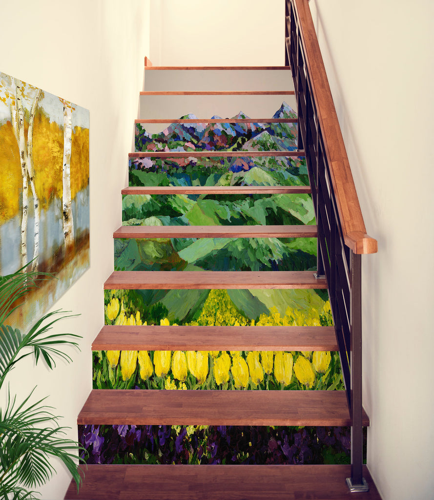 3D Yellow Tulips Bush Hillside 89179 Allan P. Friedlander Stair Risers Sinsin